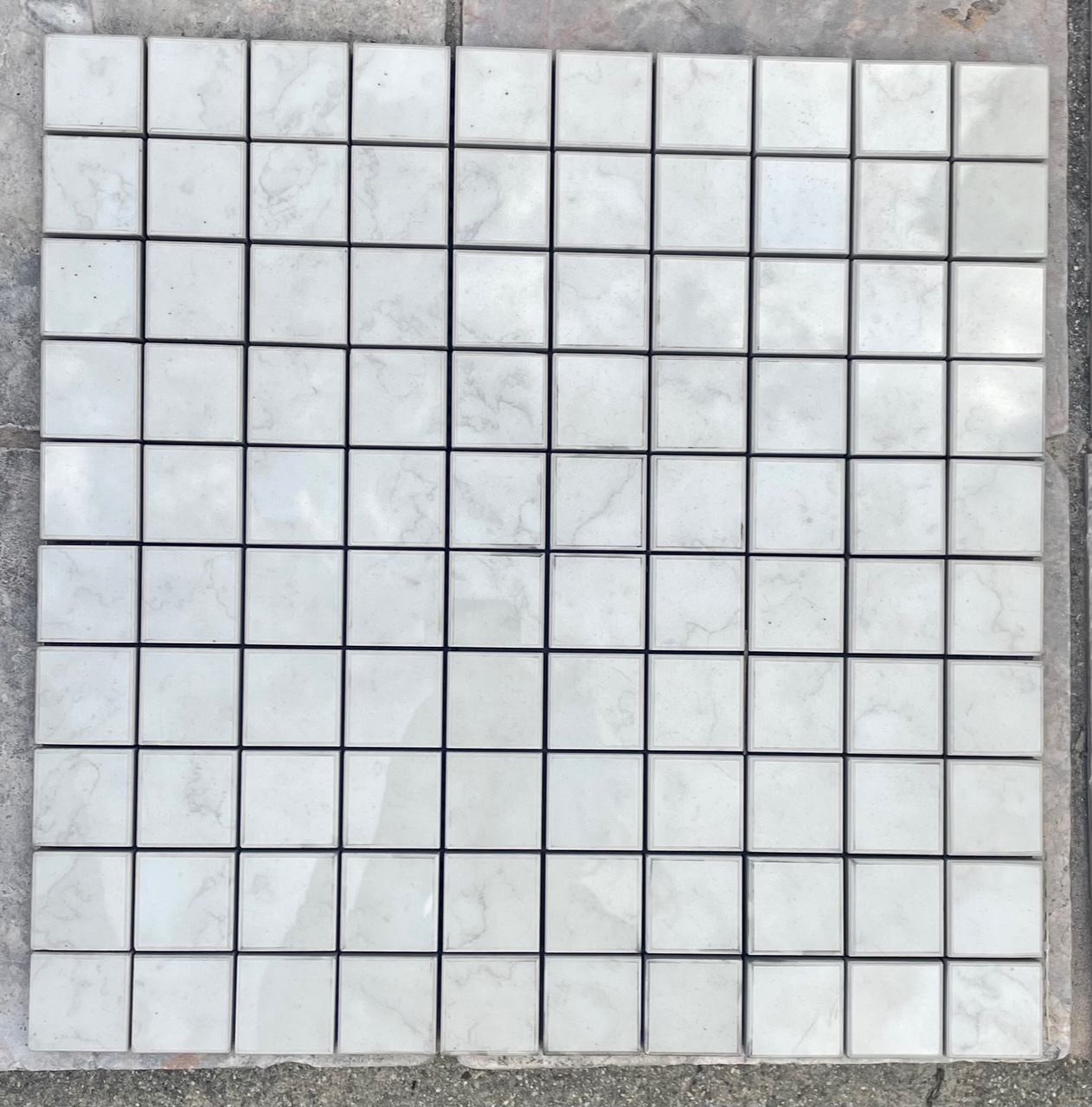 | Stone: Porcelain | Description: Biancone Mosaic (1x1 squares) | |