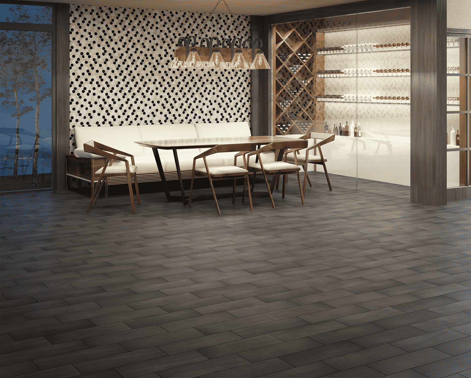 | Wall/ Floor/ Countertop: Floor Tile | Field or Trim Type: VINTAGE LEATHER 6X18 MADERA BLACK | |